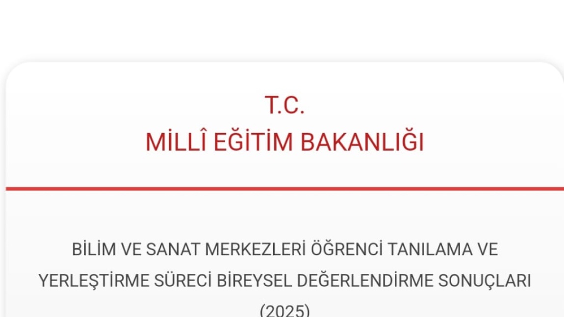 Kaynak: https://www.meb.gov.tr/2025yilibilimvesanatmerkezleriogrencitanilamaveyerlestirmesurecibireyseldegerlendirmesonuclari/duyuru/37682/tr
